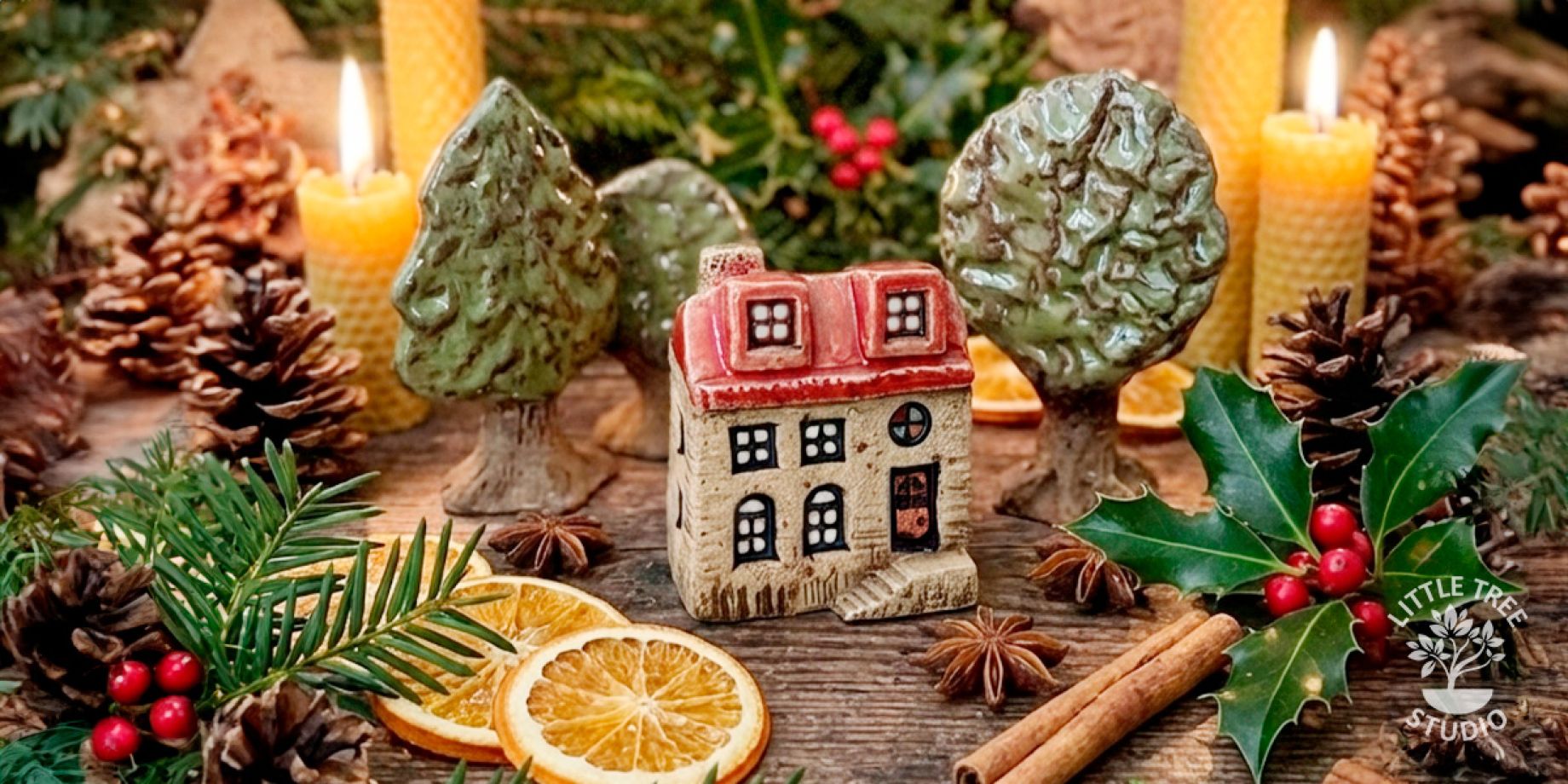 The potter washed his hands, aware of his muscles aching with the kind of tired that makes him feel content with the day’s journey. He had spent months making little ceramic houses filled with love, tealights that glowed warm with delight, tableware that sang for food and mugs that invited grateful hands. Packing up last‑minute orders and staying late so humans he had never met would have something handmade to unwrap on Christmas Day.